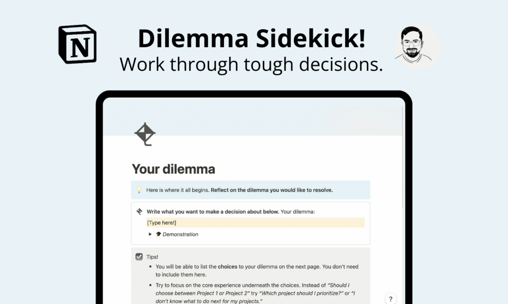 Access to the carefully crafted Notion template that will walk you through a dilemma resolution process.