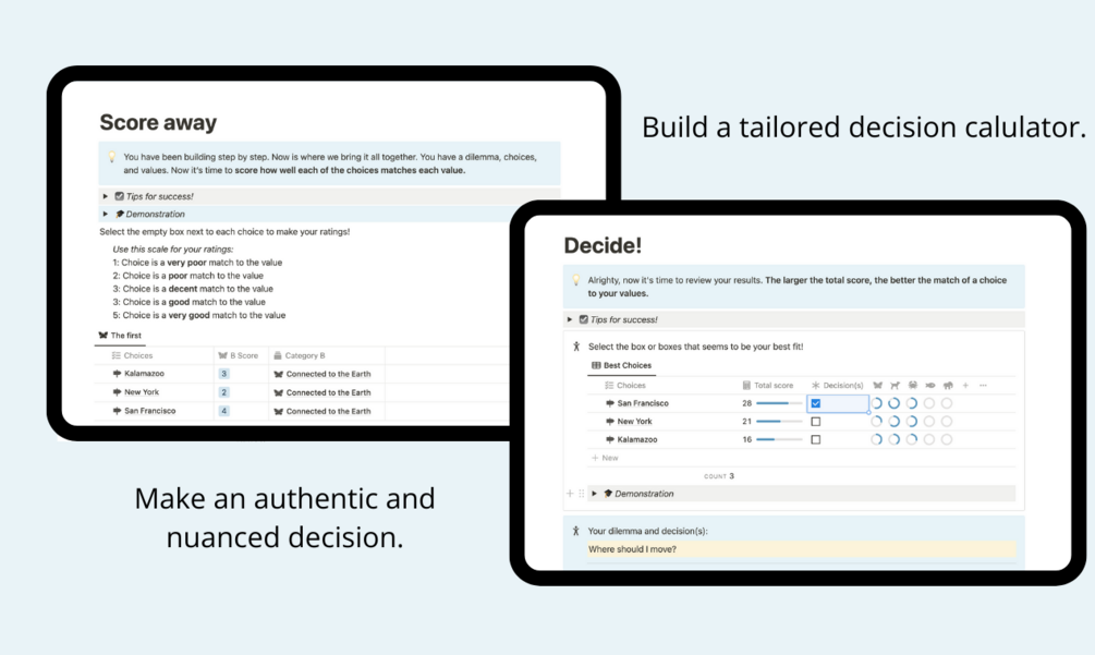 Access to the carefully crafted Notion template that will walk you through a dilemma resolution process.